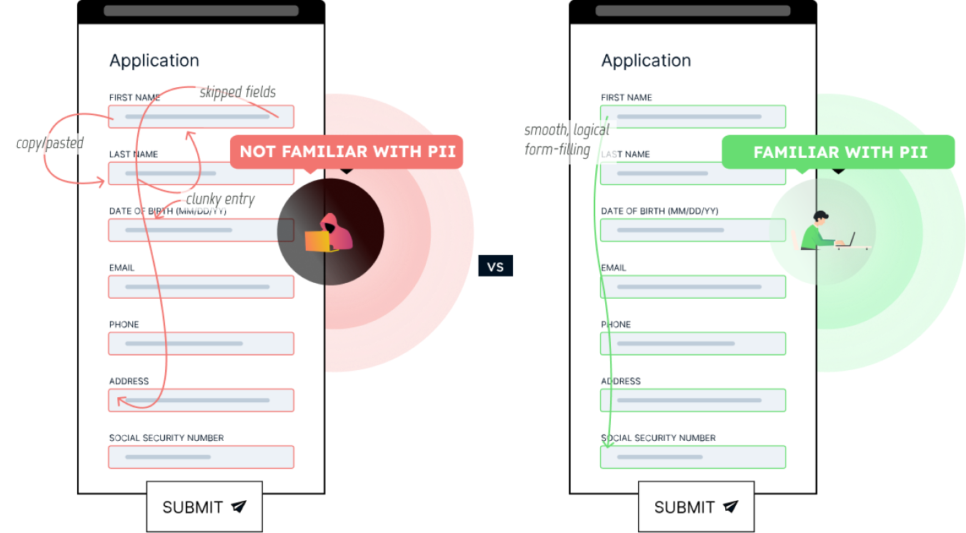 NeuroID’s advanced user segmentation and real-time analytics help you create dynamic workflows based on a user’s level of riskiness. This leads to faster verification times for trustworthy users (and more deterministic rejections for fraudsters). You can also better pinpoint stages where users might abandon your process, ensuring smoother experiences.